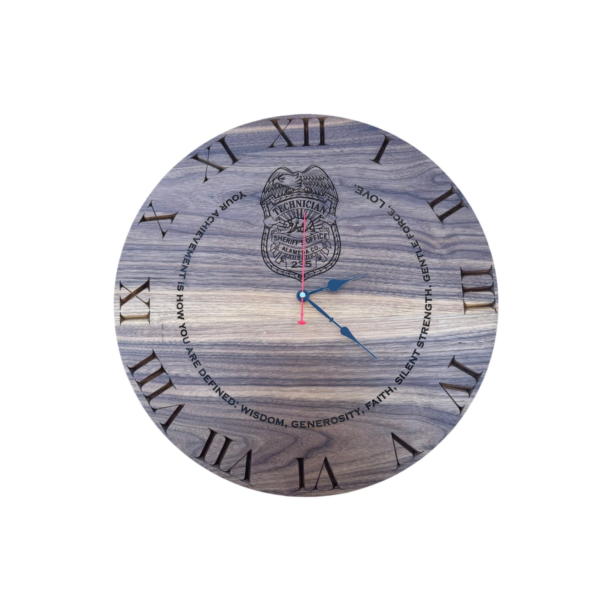 Elevate your home or office decor with this beautifully handcrafted custom walnut wooden clock. Made from premium walnut wood, this clock combines natural beauty with precision craftsmanship. Personalize it with custom engravings, such as names, badges, logos, quotes, or special dates, to create a unique and meaningful timepiece.